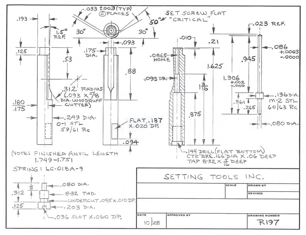 Although we always quote to your specifications, whenever possible, we will recommend design changes that can result in savings. With an increase in tool life and a decrease in repairs and downtime, a Setting Tools, Inc. design will prove to be the most cost-effective.